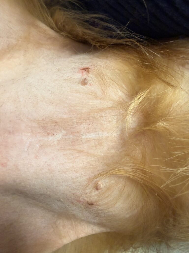 Concernant la peau, je recommanderais de réaliser une nouvelle cytologie afin d’adapter les soins locaux si nécessaire.