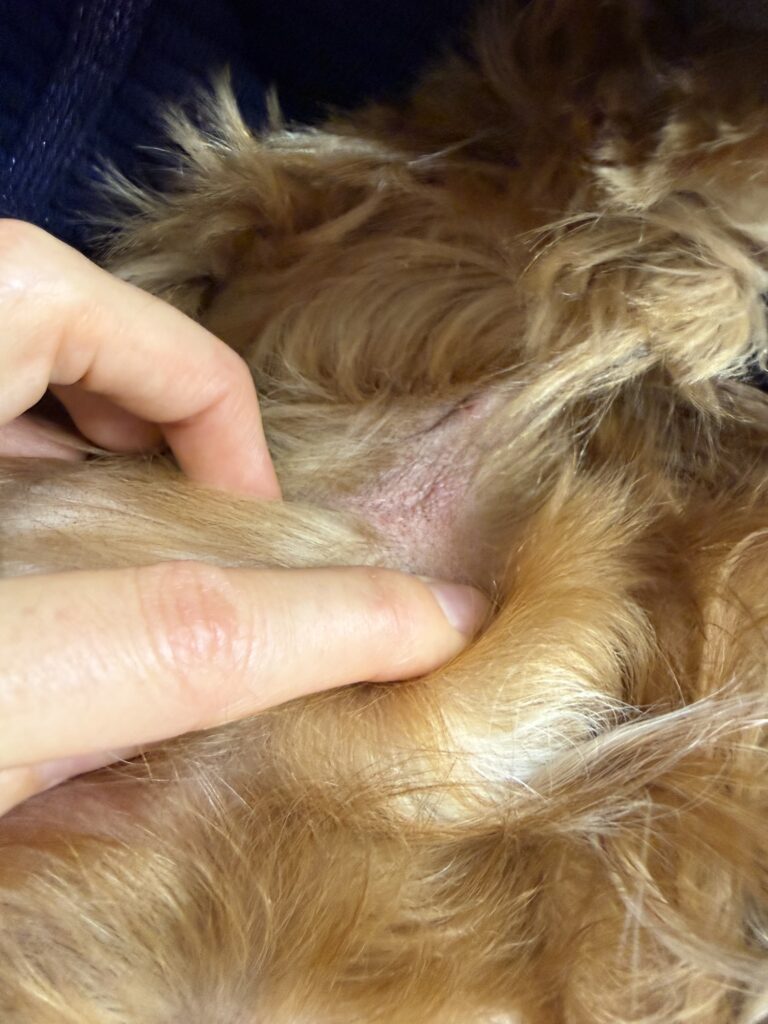 Themys a eu de l’Apoquel pendant 2 mois sans aucun résultat, puis a reçu 3 injections de Cytopoint avec peu d’amélioration. Le grattage persistait. Après la dernière injection, aucune différence n’a été observée. Quinze jours plus tard, Themys a commencé à présenter des épisodes de selles liquides chroniques. J’ai l’impression que cette injection a pu diminuer ses défenses immunitaires, ce qui lui a fait attraper une bactérie.